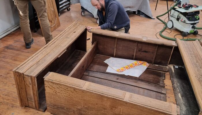 - Zerlegbarmachung des Schrankes nach historischem Vorbild