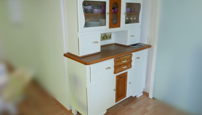 Küchenschrank mit Aufsatz, verschiedene Hölzer, 1950er Jahre