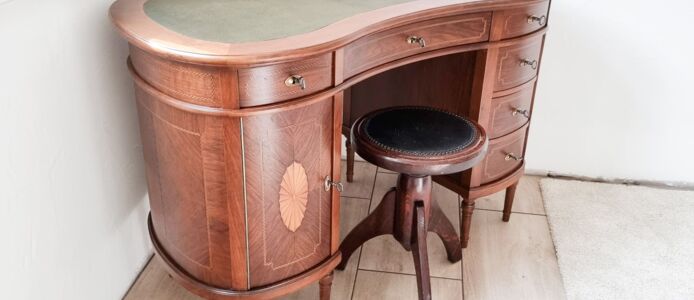 Damenschreibtisch, Nussbaumholz mit Furniereinlegearbeiten, um 1900